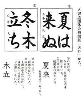 現在の小学校で使われている楷書は、「教科書体」といわれる「活字」です。